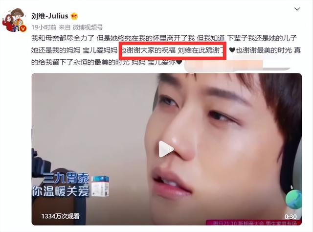 晚间,刘维发布了一则和妈妈录制综艺的视频片段,表达对母亲的感恩和怀念。