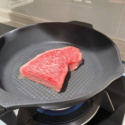 1、1.牛排提前一天从冰箱冷冻区转至冷藏区低温解冻,提前半小时从冰箱取出回温,用厨房纸吸干表面血水,两面均匀抹少量盐静置5分钟 2.平底锅烧烫,一定要等到非常烫再下牛排,大火两面各煎50秒左右
