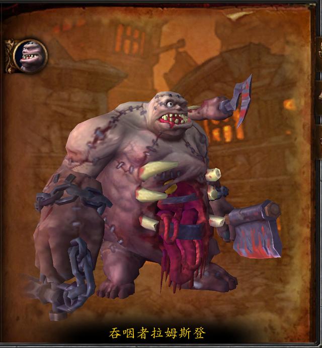 拉姆斯登是天灾军团最臭名昭著的憎恶之一,是由许多具尸体缝合而成的可怕怪物,还有着永不满足的食欲。当天灾军团侵入斯坦索姆时,这只怪物对无数无辜者的灵魂犯下了令人发指的暴行。