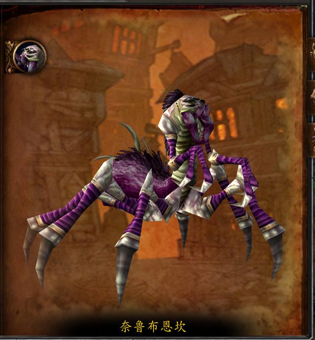 奈鲁布恩坎在蜘蛛大战中是一位可怕的战士。最后,她却因伤势过重而屈服,化身成为不死族,变成了天灾军团听话的爪牙。现在这位蛛魔正在斯坦索姆凶狠地守卫着一座通灵塔,如同用生命捍卫自己的家园。