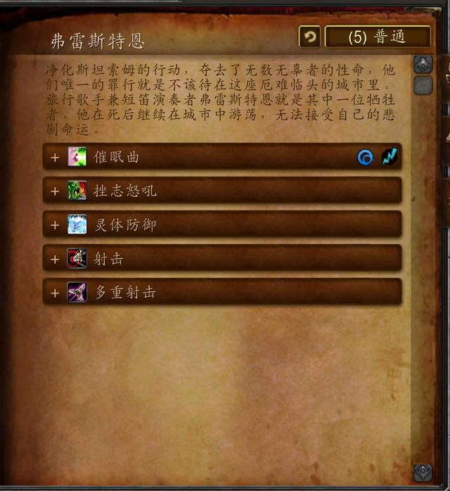 净化斯坦索姆的行动,夺去了无数无辜者的性命,他们唯一的罪行就是不该待在这座厄难临头的城市里。旅行歌手兼短笛演奏者弗雷斯特恩就是其中一位牺牲者。他在死后继续在城市中游荡,无法接受自己的悲剧命运。
