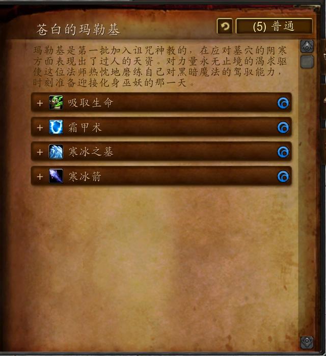 玛勒基是第一批加入诅咒神教的,在应对墓穴的阴寒方面表现出了过人的天资。对力量永无止境的渴求驱使这位法师热忱地磨练自己对黑暗魔法的驾驭能力,时刻准备迎接化身巫妖的那一天。