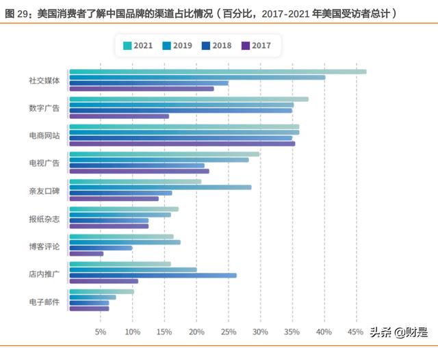 蓝色光标发布的《2021 中国品牌海外传播报告》中的问卷调查结果所示,社交媒体已经成 为海外消费者获取中国品牌信息的最主要渠道之一。与此同时,借助不同的媒体传播渠道, 中国品牌在新型市场的存在感与可见度稳步提升。