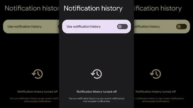 如果你想打开这个功能,首先在你的屏幕上向下滑动以显示你的通知。如果你在底部看到一个历史记录按钮,那么恭喜你,你已经打开了这个功能。