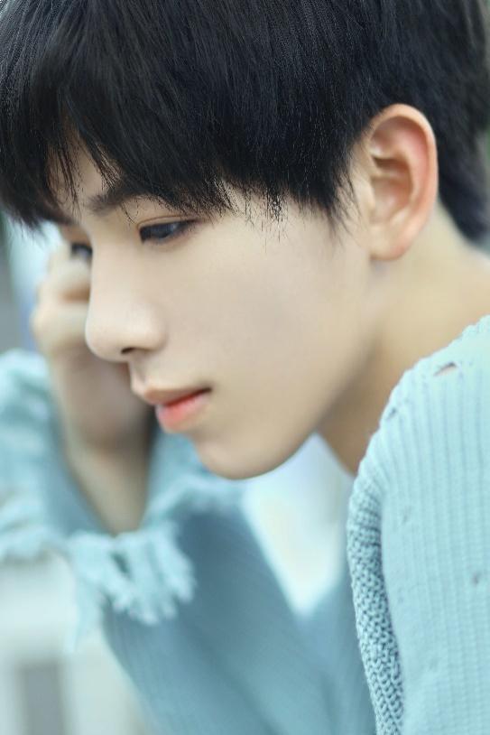 穿着蓝色毛衣的他,清爽温暖,第一眼就是突出的存在。