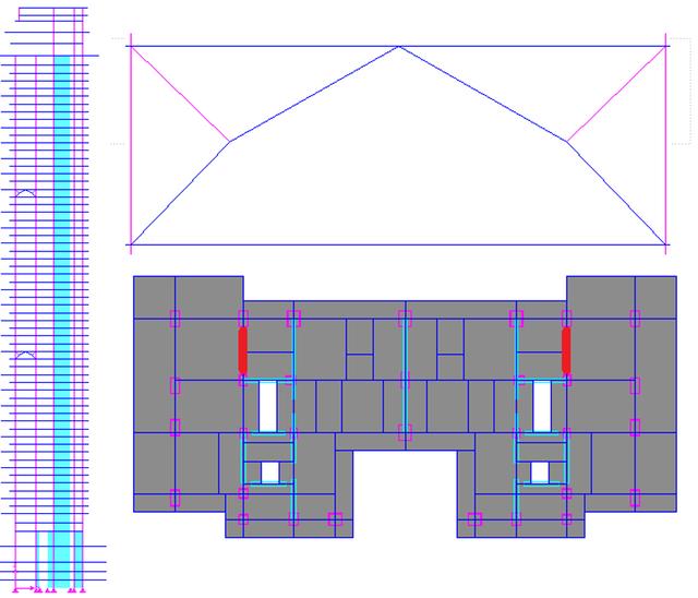 抗侧力的构件主要有:钢支撑,钢板墙,边框柱和钢板组成的筒体。