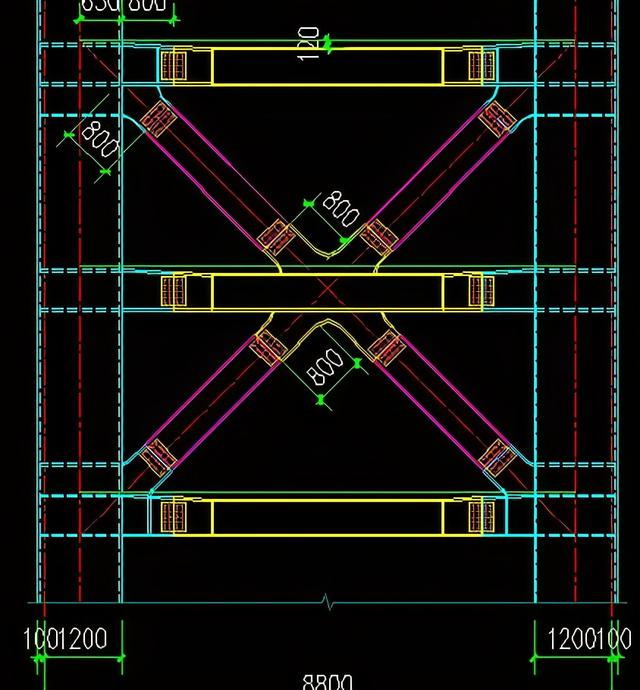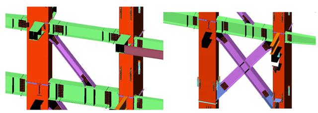 由于框架结构的适用高度较小,高层钢结构一般采用框架—支撑体系。实例分析主要以各类支撑为主要对象。
