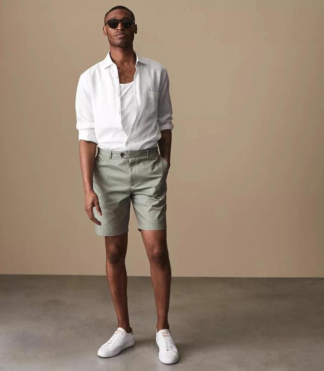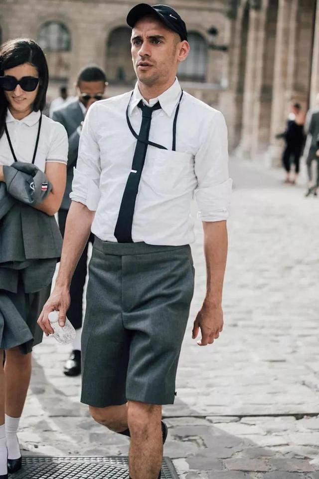 1、需要「装正经」的场合,想要穿短裤只能穿「西装短裤」这种短裤就是正装西裤的截短版,裤口微微收窄,款式简洁、剪裁考究。穿成“她”眼中的精英男。