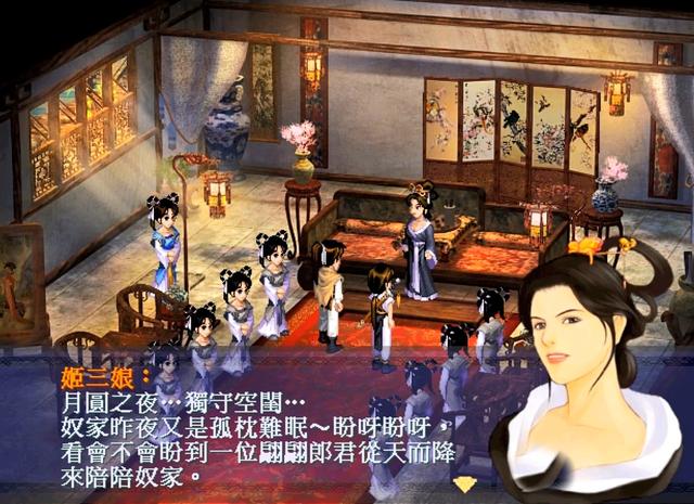 由于被古董商诬陷,只能去寻找线索,来到姬三娘家里,这时不是女飞贼的打扮,虽然年龄稍微大了一点,但风韵犹存。但这里李逍遥比较正直,加上林月如吃醋,只能冲冲离去。真是“年少不知XX好,错把少女当成宝”