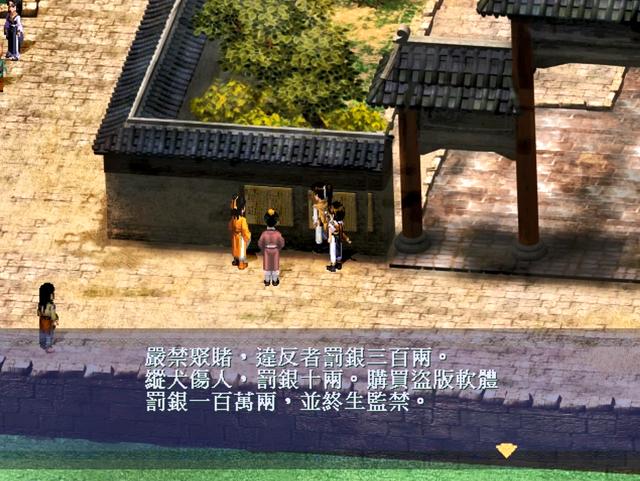 先来看看扬州城中的告示,聚赌罚300,纵犬伤人罚10两,购买D版,罚款100万。如果真的这样罚,当初很多人就直接破产了,当年玩D版的应该还是比较多的,我自己在电脑房玩的估计也是。