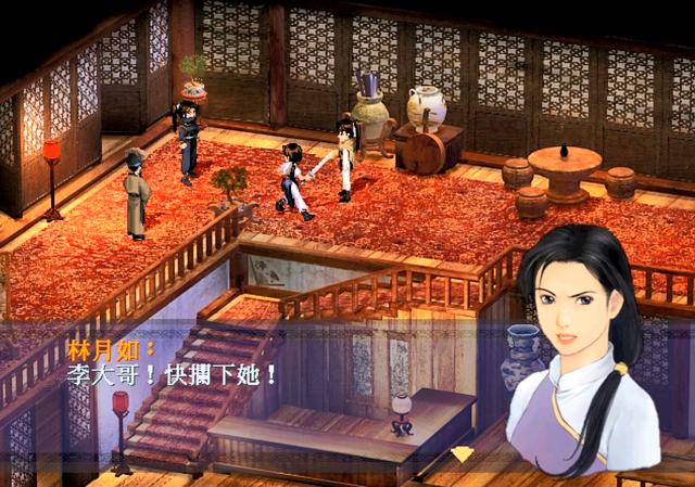 林月如表达了心意后,听到了外面的喊声,先冲出去,李逍遥随后赶到,这是第一次对决姬三娘,当然,这里除了玩家知道女飞贼身份,游戏中的主角龙套是不知道的。