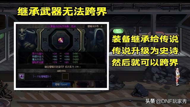 “12自选武器无法跨界”,让围观的玩家懵了,我们的都可以跨界,为什么你的就不能,你是怎么做到的?原来,这位玩家自选获取了12史诗武器后,想节约跨界成本,将装备继承给了传说装备,导致无法跨界,无奈之下又继承回史诗想跨界,导致无法跨界了。