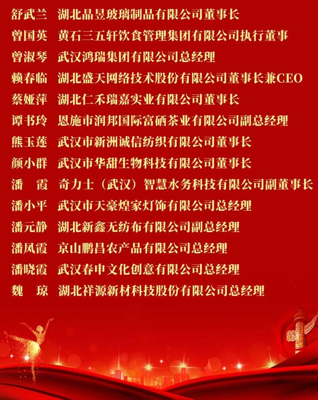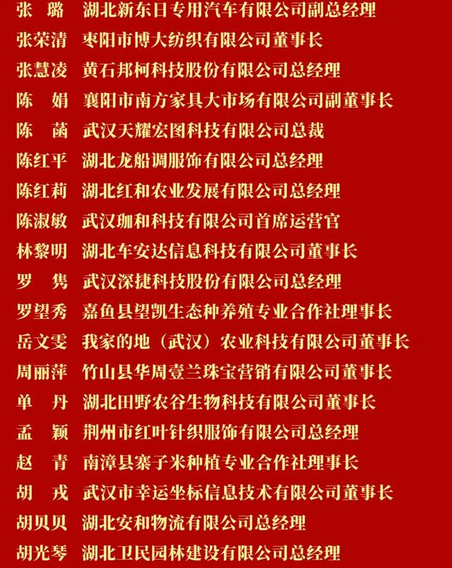 近日,省妇联、省工商联、省经信厅联合发布 “湖北省百名优秀创业女性人才”名单。