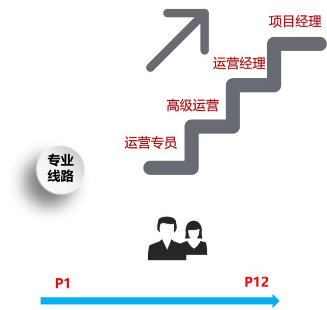专业通道的发展路径一般是运营专员、高级运营、运营经理、项目经理等。这个路径对专业度有极高的要求,但并不过度参与团队管理。 这条线路,比较适合那些只想做安静美男(女)子的同学,专注于自己手头上的事就可以了。