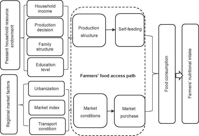 本文基于食物获取权理论,利用中国营养与健康调查(China Nutrition and Health Survey,CHNS)数据,实证检验农民生产结构和区域市场条件对农民营养摄入的影响及其机制。结果表明,与专业化生产相比,生产多样化农户的营养摄入量较高。其次,地区市场条件会不同程度影响低收入农户与非低收入农户的营养摄入水平。对于低收入农户,市场条件对农户碳水和脂肪摄入量影响显著,提高收入水平对提升农户的营养摄入水平作用有限。对于非低收入农户,市场条件有效改善农户的膳食结构,提高其营养摄入水平。与低收入农户相比,非低收入农户的收入水平对其营养摄取水平有显著影响。