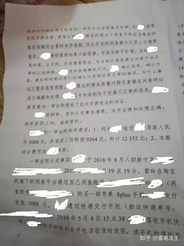 雷电法王:闲鱼被骗后的退一赔三诉讼,原作者:知乎 雷电法王,转载请注明原作者。