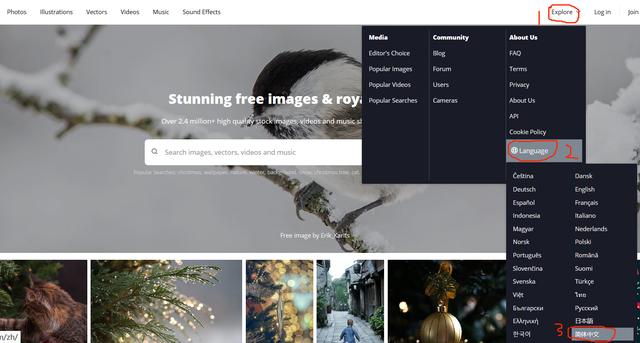 第一次打开,网站语言是英语。按照下面操作可切换成中文。