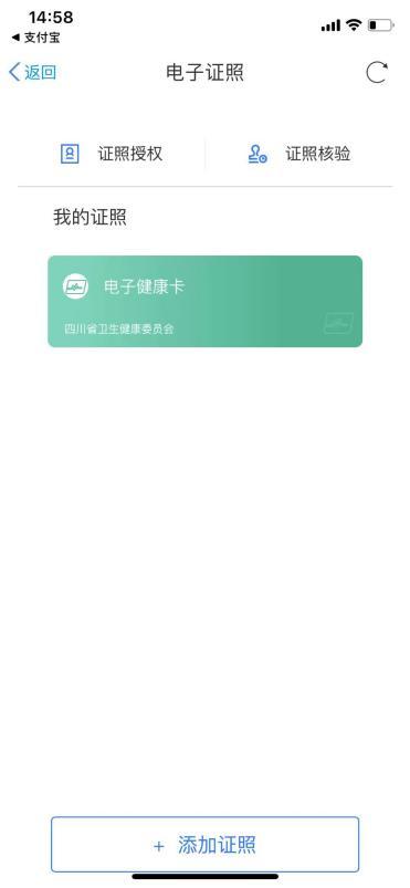 (3)进入电子证照页面,点击“添加证照”