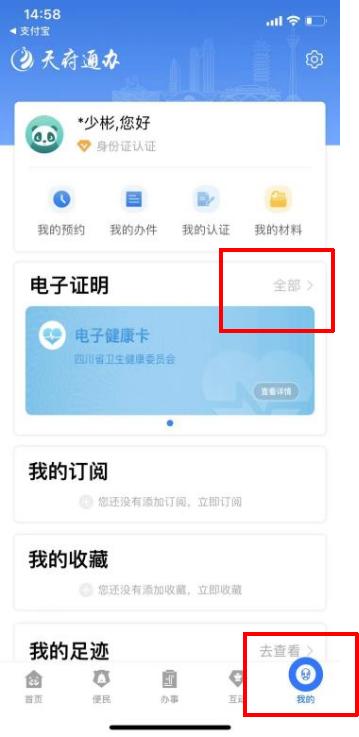 (2)选择“我的”,“电子证照”,点击“全部”