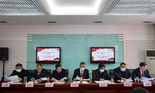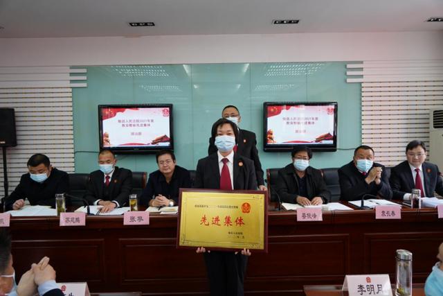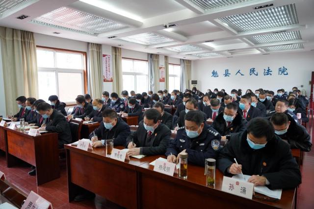 2月14日下午,勉县法院召开2021年度工作总结表彰暨2022年度工作安排部署会。会议由党组成员、副院长苏建鹏主持,院党组成员、县纪委监委派驻纪检监察组组长周益帆以及全院干警参会,县委政法委副书记晏俊峰、县人大法工委主任张攀受邀列席会议。