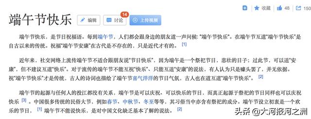 其中,有这样一句:在端午节互道“端午节快乐”是自古以来的传统。祝福“端午节安康”在古代是不存在的,只是近代才有的。