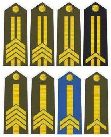 (一)士官:四级军士长、三级军士长、二级军士长、一级军士长;四级专业军士、三级专业军士、二级专业军士、一级专业军士。