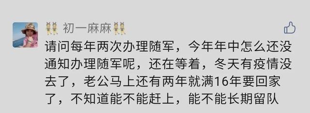 这个问题,目前也是关系很多老军士服役的态度,特别是一些军嫂的看法。