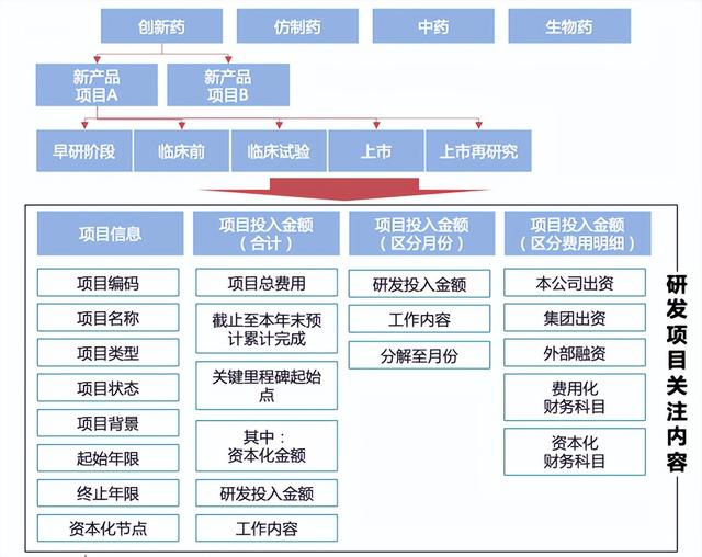 从预算的角度来考虑,进入临床前之后,需要建立完整的端产品研发项目级预算管理机制,并在开发过程持续跟踪预算。比如年度的一些执行情况分析,偏差分析,进度分析等等,从项目预算到整个年度的概算,到最后比如说上市之后,整个研发项目的一些投入等等,需要有相应的数据可以归结得到。