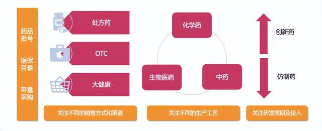不同的类型产品如处方药、OTC、大健康会有不同的销售方式和渠道。除此之外,基于不同药品的种类,比如化学药,生物医药,包括中成药等等会有不同的生产工艺流程,体现在未来成本管控和供应链端不同,预算管理的设计方案也会有差异。