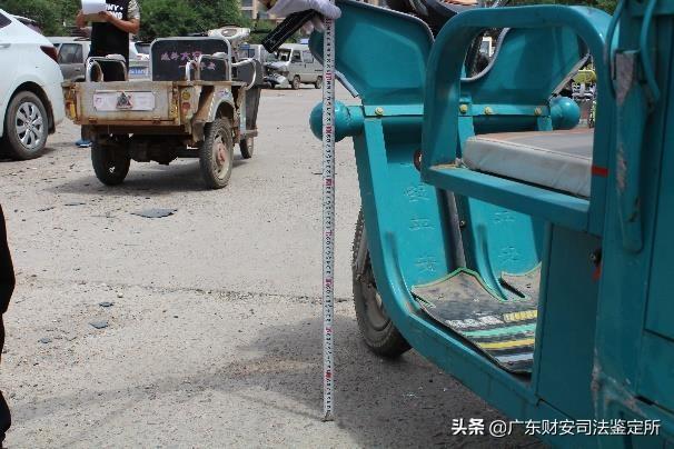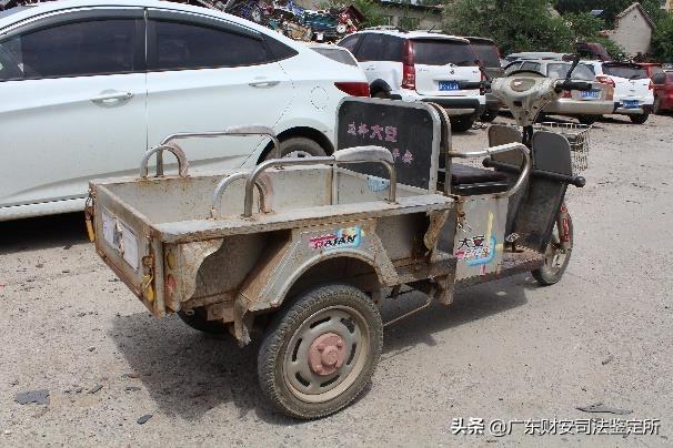 【鉴定意见】大安牌电动三轮车右后灯组安装板前缘与帅克牌电动三轮车前护杠上横梁左侧后部发生过接触。