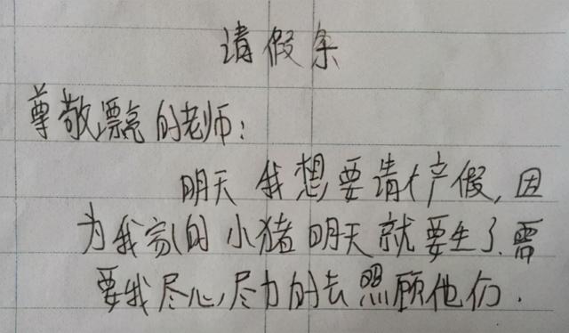 这位同学的请假理由居然是照顾家里生宝宝的小猪,相信老师看到之后真不知道该夸学生有爱心,还是该回绝他的请假理由。