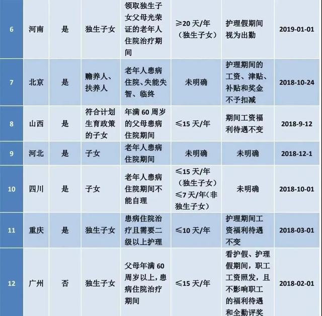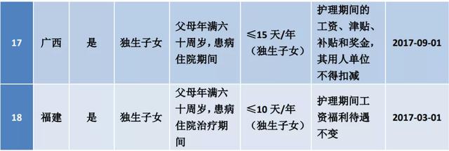 据悉,福建、广西、海南、湖北、黑龙江、淮安、广州、重庆、四川、河北、山西、北京、河南、宁夏、内蒙古、云南、贵州、西安、南京等多地出台了“独生子女护理假”相关的具体规定。