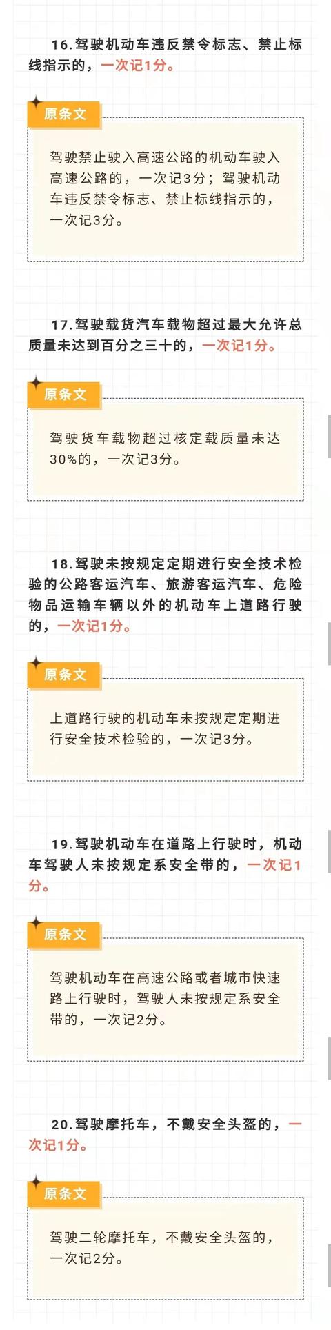 近日,公安部发布了新制定的《道路交通安全违法行为记分管理办法》(公安部第163号令)将于2022年4月1日起正式施行,2022版《办法》在保持对酒后驾驶、交通肇事致人伤亡后逃逸、使用伪造变造牌证等严重妨碍交通安全的违法行为高压态势的前提下,根据对道路交通安全畅通影响的程度,对交通违法记分做了调整,相比“2016版”交通违法与记分,2022版记分的交通违法共50项,其中7项记12分,7项记9分,11项记6分,15项记3分,10项记1分。记分类型增加了扣9分、删除了扣2分的违法行为。