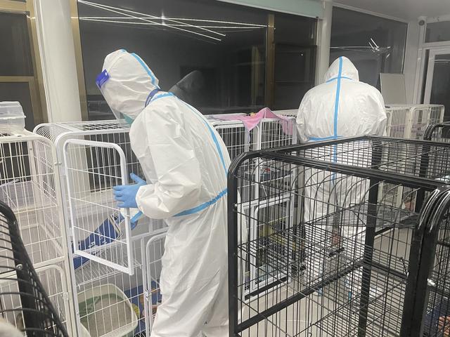转运的宠物,如果有相关疾病,会被送往主人选定的动物医院。也有人选择将宠物送往一些民营的寄养基地,后者会清空其他宠物,此后只接受该涉疫小区的宠物,且基地直线距离200米内,不能有任何人家居住,每日费用在50-200元不等。而宠物在寄养基地的消杀、核酸检测等工作,则均由志愿者负责完成。