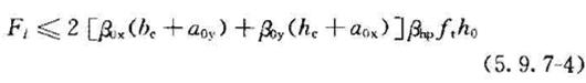 式中 β0x、β0y——由式(5.9.7-3)求得,其中λ0x=a0x/h0,λ0y=a0y/h0,λ0x、λ0y均应满足0.25~1.0的要求;