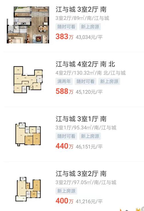 从目前打听到的几个江核新挂二手房,并没有出现想象中的降价抛售,更多的还是要高于/挂平周边几个小区的价格,比如江与城或绿城海悦,4.5左右的挂牌价依旧不少。想捡漏硬腿子们,恐怕要失望了。