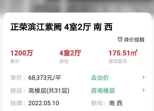 (1)正荣滨江紫阙,一套挂牌6.8万/m²。