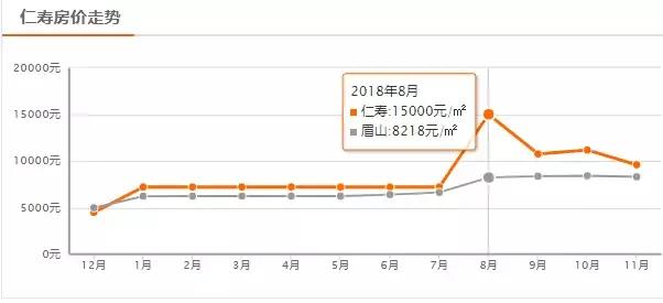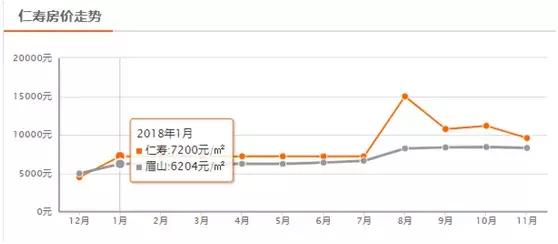 从2017年底,仁寿房价仅4475元/平,眉山整体值也维持在4968元/平。