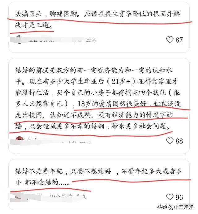 18岁还小,没有走出校园,认知低,没有经济能力,会造成更多的不幸家庭。