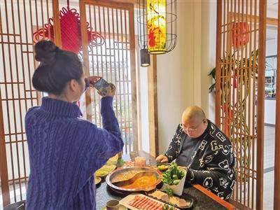 11月25日这天中午,邱绍春和美食博主小语出现在南京建邺区应天大街的一家火锅店里,下午他安排了好几家探店计划。