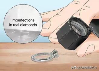 用放大镜检查钻石。真钻石一般会有一些小的瑕疵,通过放大镜一般可以看出来。通过放大镜寻找矿物形成时的瑕疵,或者一些微妙的不同颜色,这两种现象都可以证明这颗钻石是真的。
