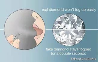 呼气来测试。对着宝石呼一口气。真钻石不会受雾气影响,假钻石呢,则会蒙上一层朦胧的水雾。进行重复多次测试更加明显,你会看到,假钻石雾气越来越厚。每次进行呵气,假钻石表面的雾气会越来越明显,而真的钻石始终是清澈明亮的。