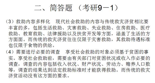 二、简答题 1.现代社会救助与历史上的救灾济贫相比,发生了哪些变化?[人大2007年研]