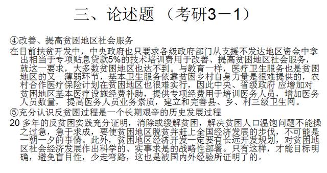 在目前扶贫开发中,中央政府也只要求各级政府部门从支援不发达地区资金中拿出相当于专项贴息贷款5%的技术培训费用于改善、提高贫困地区社会服务,就这一要求,大多数贫困地区也达不到。与教育一样,医疗卫生服务也是贫困地区的又一薄弱环节,基本卫生服务依靠贫困乡村自身力量是很难提供的,农村合作医疗保险计划在贫困地区也很难实行,因此中央、省级政府 应增加对贫困地区基本医疗设施经费补助,提供专项经费用于培训医务人员,增加医务人员数量, 提高医务人员业务素质,建立和完善县、乡、村三级卫生网。