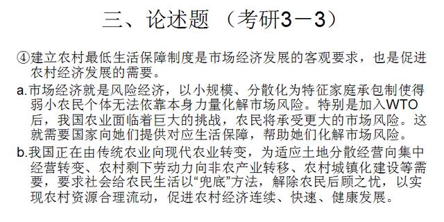 a.市场经济就是风险经济,以小规模、分散化为特征家庭承包制使得弱小农民个体无法依靠本身力量化解市场风险。特别是加入WTO后,我国农业面临着巨大的挑战,农民将承受更大的市场风险。这就需要国家向她们提供对应生活保障,帮助她们化解市场风险。