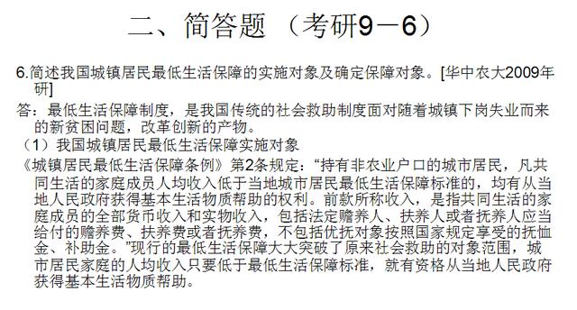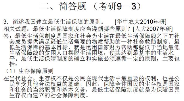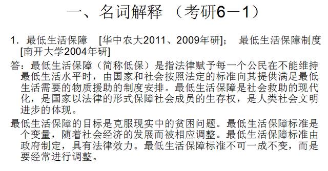 1.最低生活保障 [华中农大2011、2009年研]; 最低生活保障制度[南开大学2004年研]