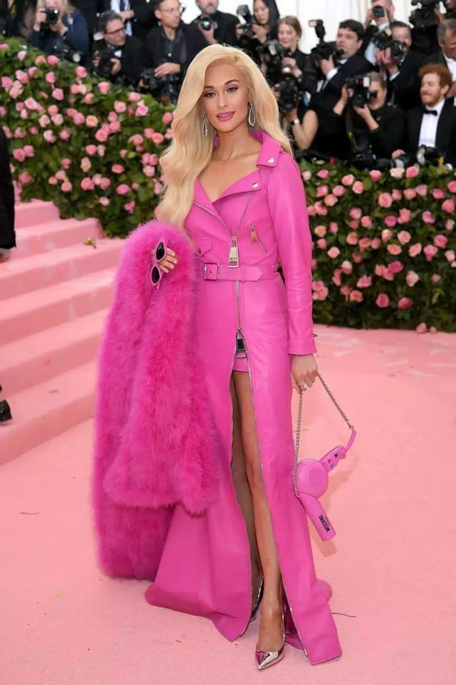 这个系列在奢侈品电商NET-A-PORTER上独家发售,里面所有的单品都围绕着最经典的芭比粉。今年Met Gala上Kacey Musgraves就有穿系列里的粉色套装。