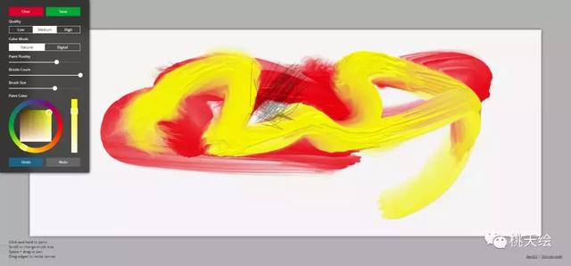 然而在网上,却有一个模拟水彩的好玩网站。你可以用鼠标或者数位板随意挥洒,还不用担心水彩染到身上。对于做设计的小伙伴来说,既可以用笔刷画的背景做纹理,又可以利用笔触做毛笔字。更多的用途小伙伴门可自行探索~~
