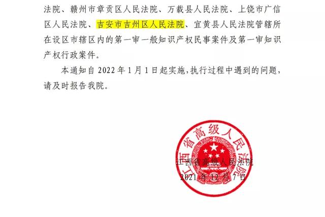 重要通知!重要通知!吉安市第一审知识产权民事、行政案件集中管辖调整。