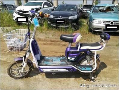 【鉴定意见】某品牌小型轿车前部左侧与某品牌电动二轮车后部接触碰撞。